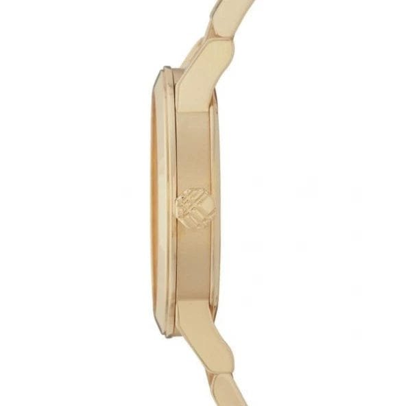 Gardez l’heure avec style grâce à cette magnifique Montre Burberry The City UB9103, Cette pièce présente un boîtier et un bracelet en acier inoxydable de couleur dorée, un cadran avec des repères de couleur dorée, un guichet de date à 3 heures et une trotteuse.