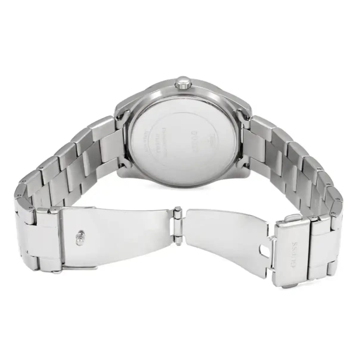 Matériau : Boîtier et bracelet en acier inoxydable de couleur argentée.