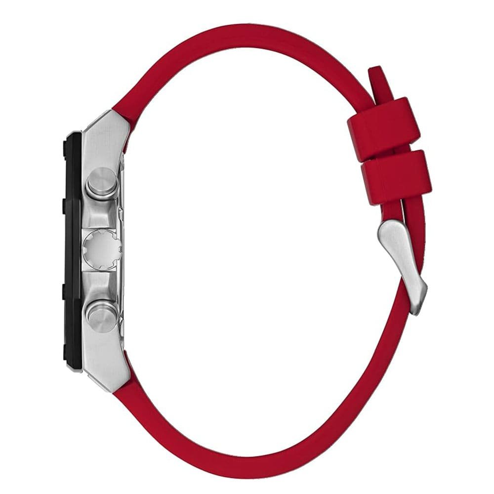 La montre Guess Momentum GW0263G3 est une montre pour homme, à mouvement quartz chronographe et affichage analogique, avec un bracelet en silicone et un boîtier en acier inoxydable.