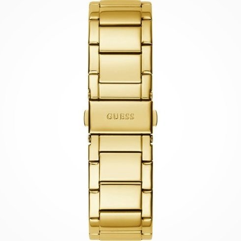 La montre Guess Phoenix GW0104L2 (ou Raven selon les collections) de couleur dorée, dotée d’un mouvement à quartz multifonction et d’un bracelet en acier inoxydable.