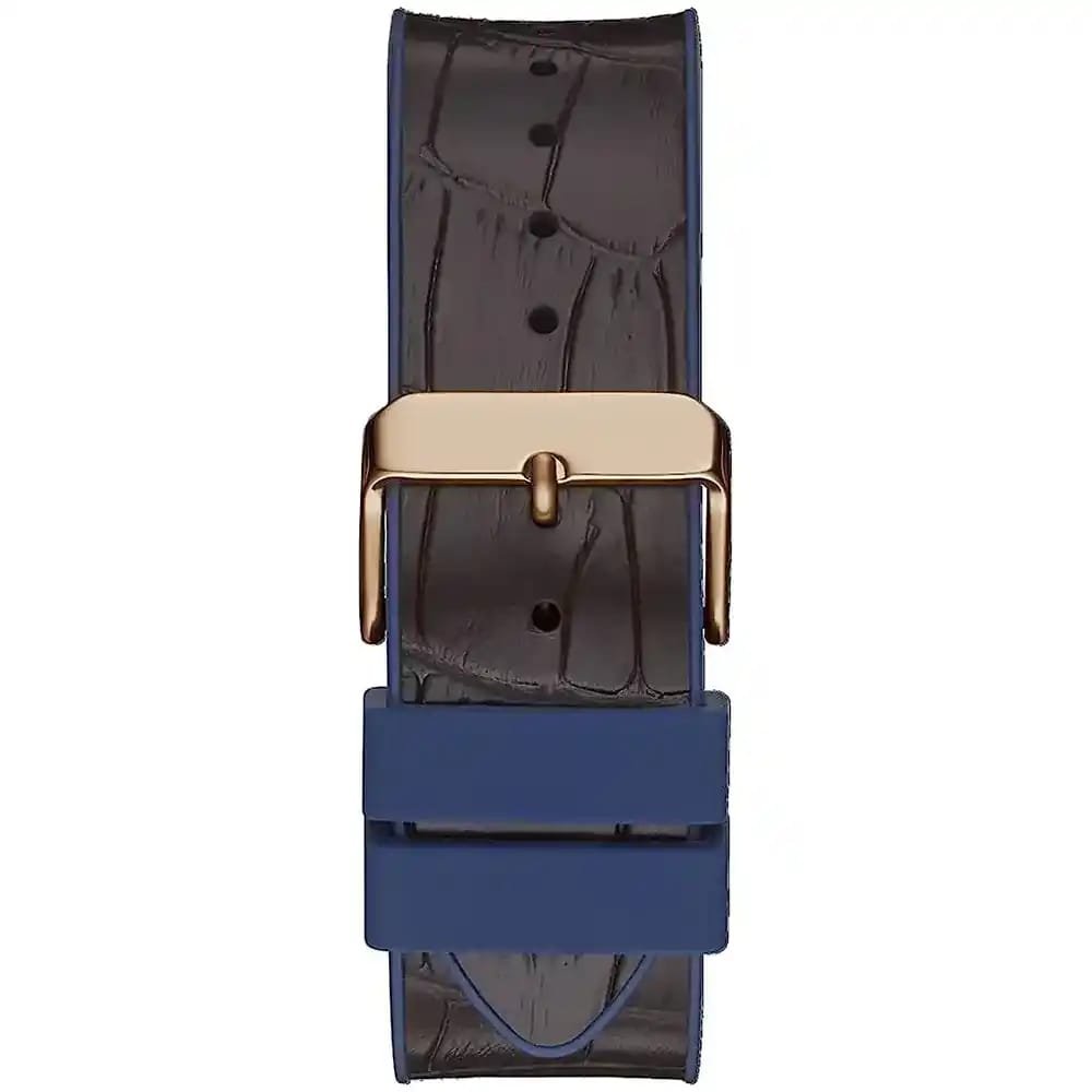 Découvrez la montre Guess Phoenix GW0386G2. Avec son boîtier en acier inoxydable doré rose et son bracelet en silicone bleu et brun, elle allie élégance et confort. Résistante à l’eau jusqu’à 50 mètres, elle dispose d’un cadran bleu serti de diamants. Dimensions : 44 mm de large et 10 mm de haut.