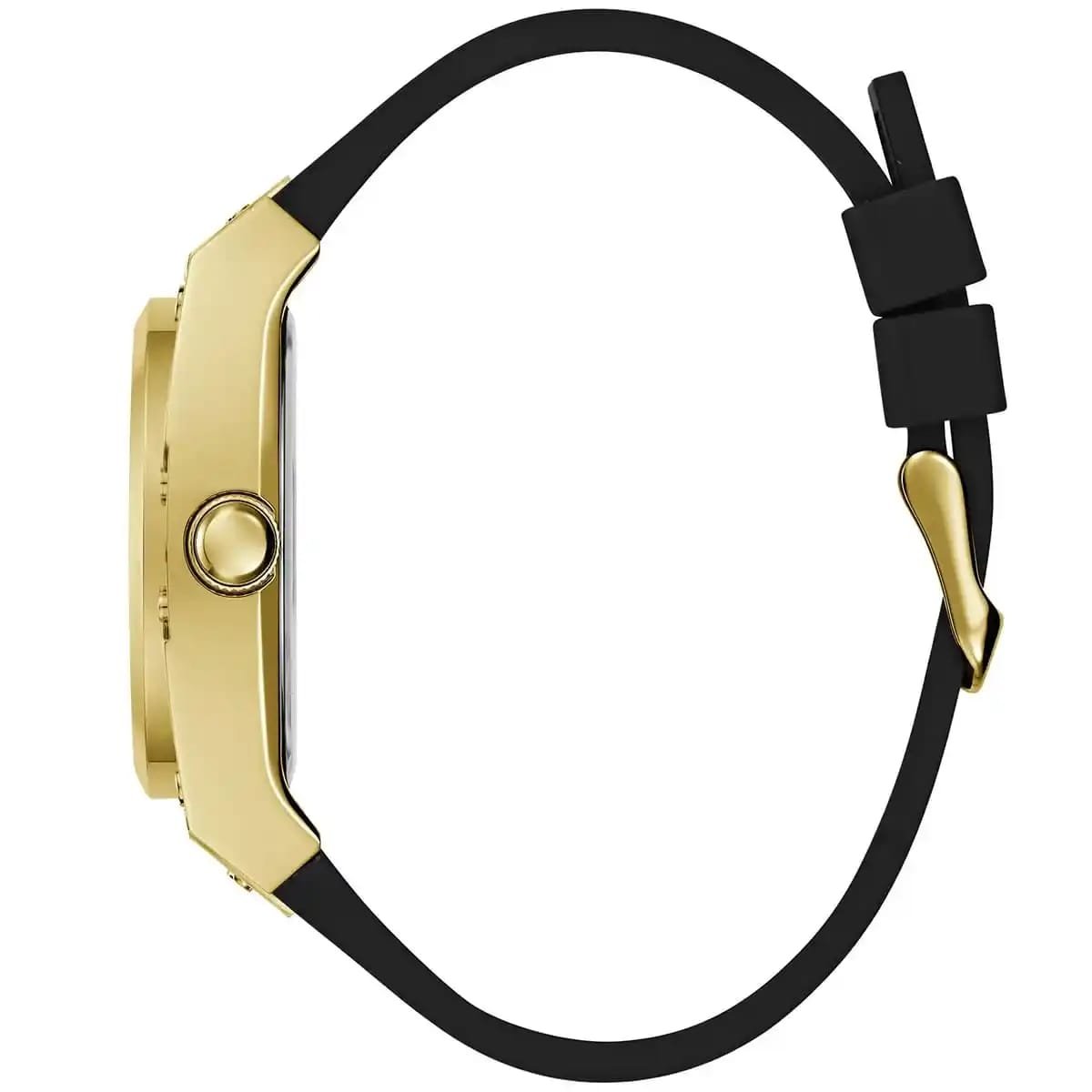 La montre Guess Prodigy GW0569G2 présente un design audacieux et contemporain, caractérisé par un boîtier en acier inoxydable doré de 43 mm. Le cadran noir, partiellement squeletté, est doté d’indicateurs multifonctions dorés (jour, date, 24 heures) et d’aiguilles lumineuses. Le tout est complété par un bracelet en silicone noir confortable pour un look sportif et élégant. Elle est étanche jusqu’à 5 ATM.