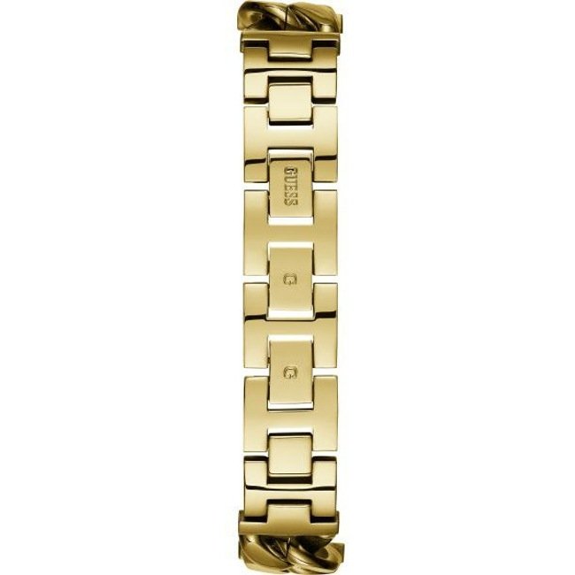 La montre Guess Vanity W1029L2. Il s’agit d’une montre pour femme, de style fantaisie/habillée, dotée d’un bracelet et d’un boftier carrés dorés en acier inoxydable.