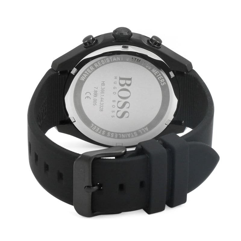 Matériau du bracelet : Silicone noir avec logos BOSS (certaines variantes peuvent avoir un bracelet en acier inoxydable noir PVD)