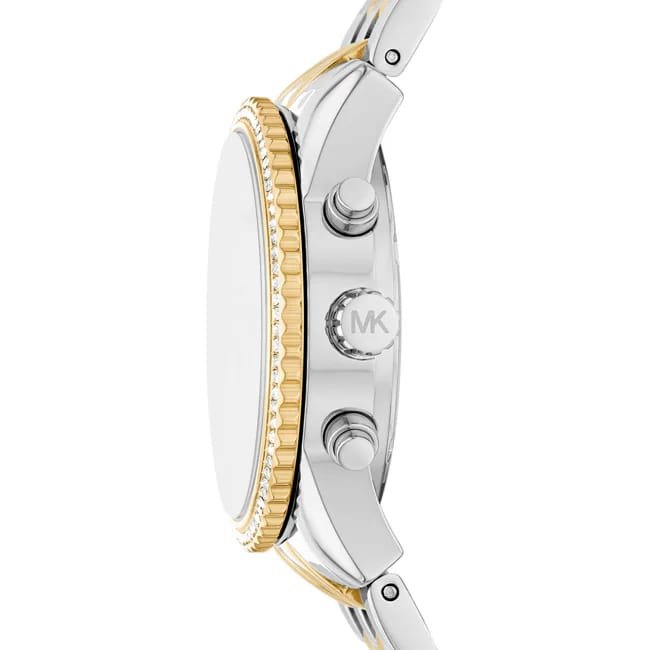 La montre Michael Kors Braynt MK7532, un accessoire raffiné qui allie sans effort le glamour urbain au chic classique. Cette pièce maîtresse bicolore est conçue pour la femme moderne qui apprécie le luxe discret et la fonctionnalité.