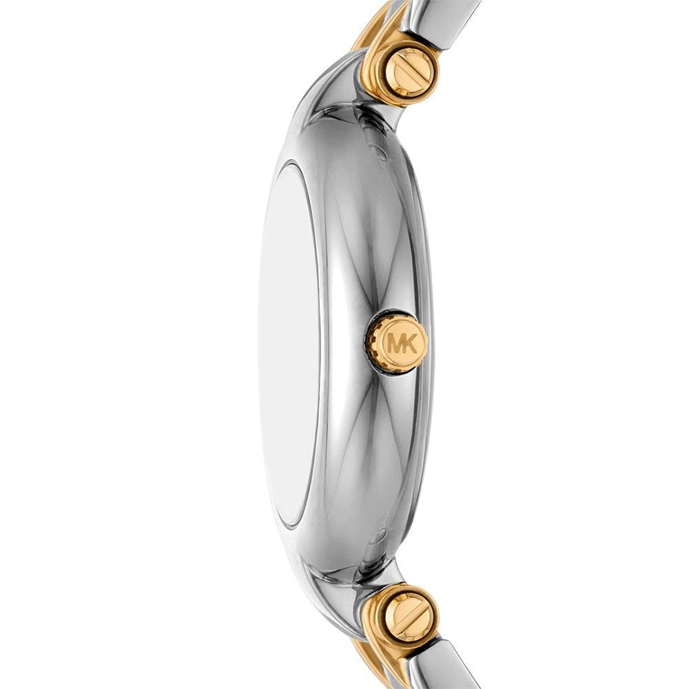 La montre Michael Kors Laney MK4895 offre un style chic, intemporel et polyvalent grâce à son design bicolore et son cadran en nacre délicat. C’est un accessoire raffiné qui allie l’élégance classique à une touche de modernité.