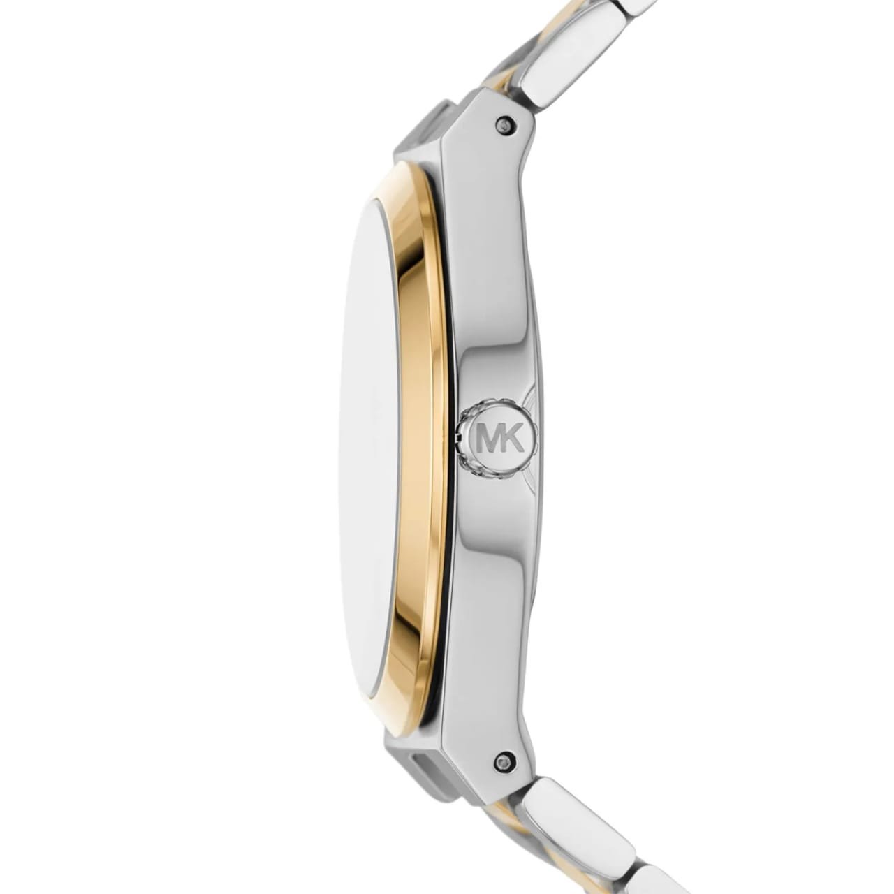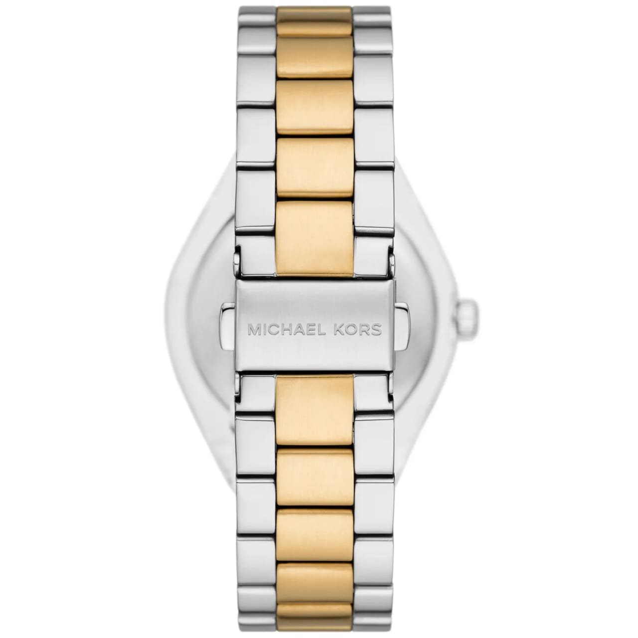 La montre Michael Kors Lennox MK7464, Cette montre allie un design classique avec des touches modernes et élégantes, mettant en valeur son bracelet bicolore et son cadran blanc éclatant.