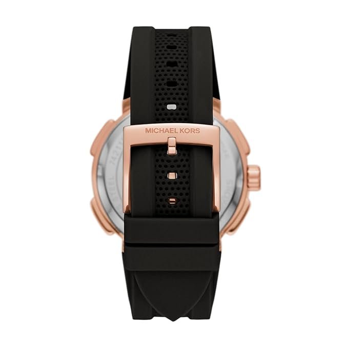 Cadran: Noir avec motif logo MK imprimé et détails ton or rose
