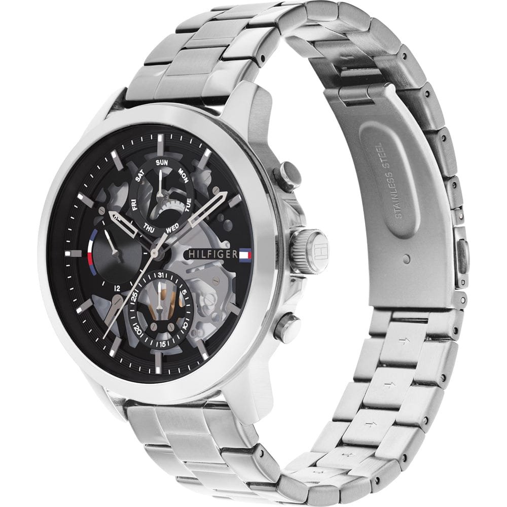 La Montre Tommy Hilfiger Henry, modèle multifonction , référence 1710477. Elle est dotée d’un design squelette saisissant qui met en valeur une partie de son mécanisme.